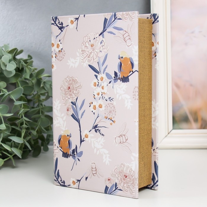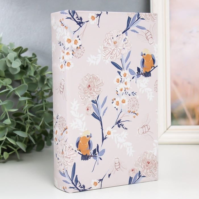 Сейф-книга дерево кожзам "Белые цветы и жёлтые птицы" 21х13х5 см
