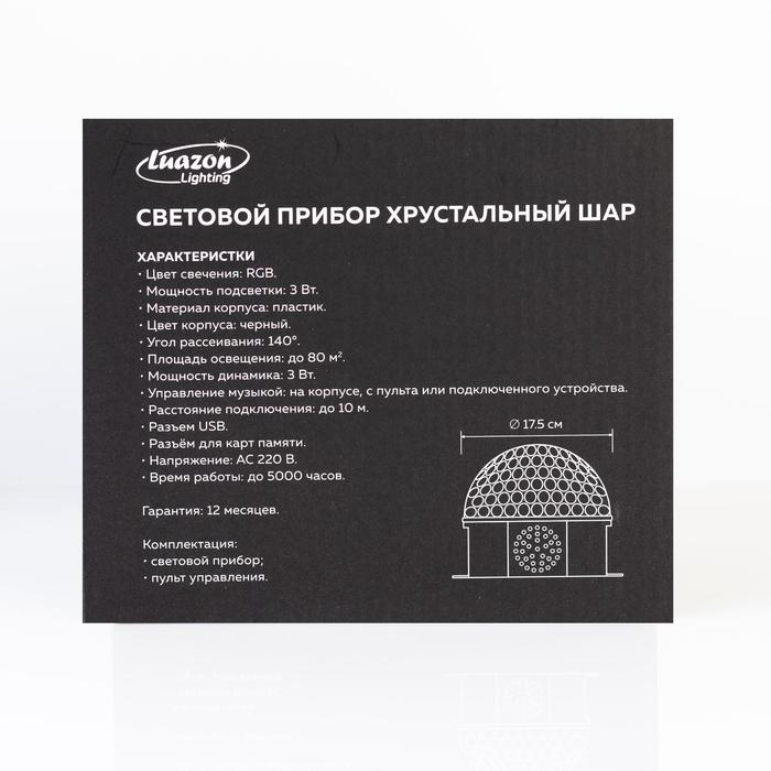 Световой прибор «Хрустальный шар» 17.5 см, динамик, свечение мульти, 220 В
