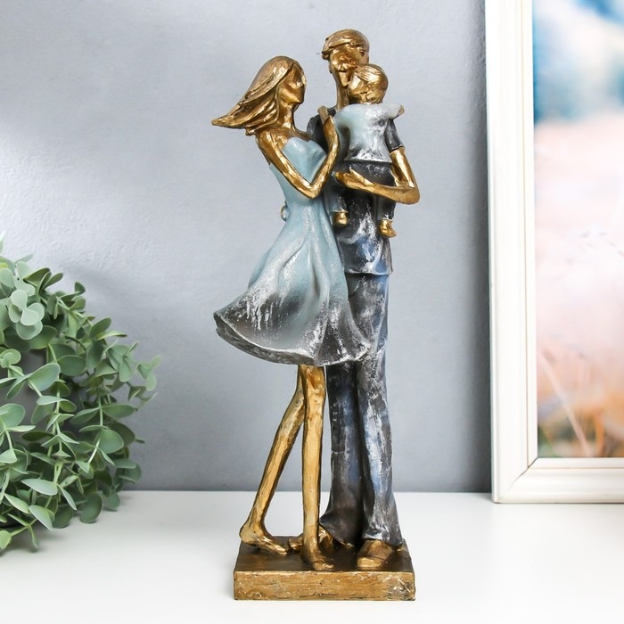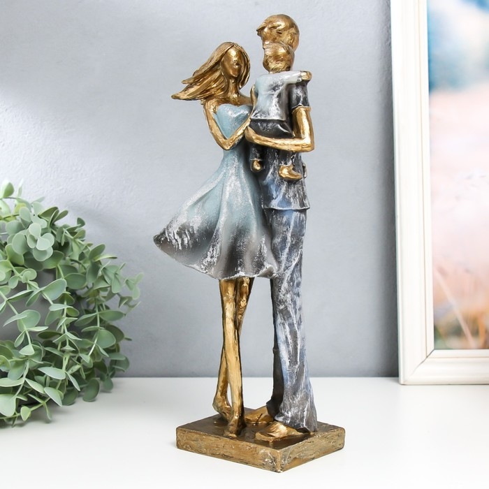 Сувенир полистоун "Семейная пара с сыном" серый 10х12х32 см