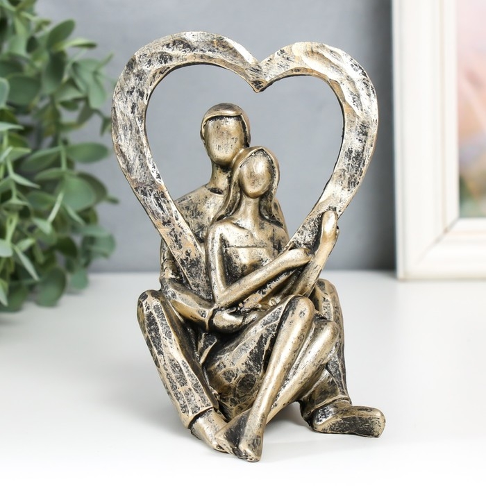 Сувенир полистоун "Влюблённая пара с сердцем" 9,5х10,5х14,5 см