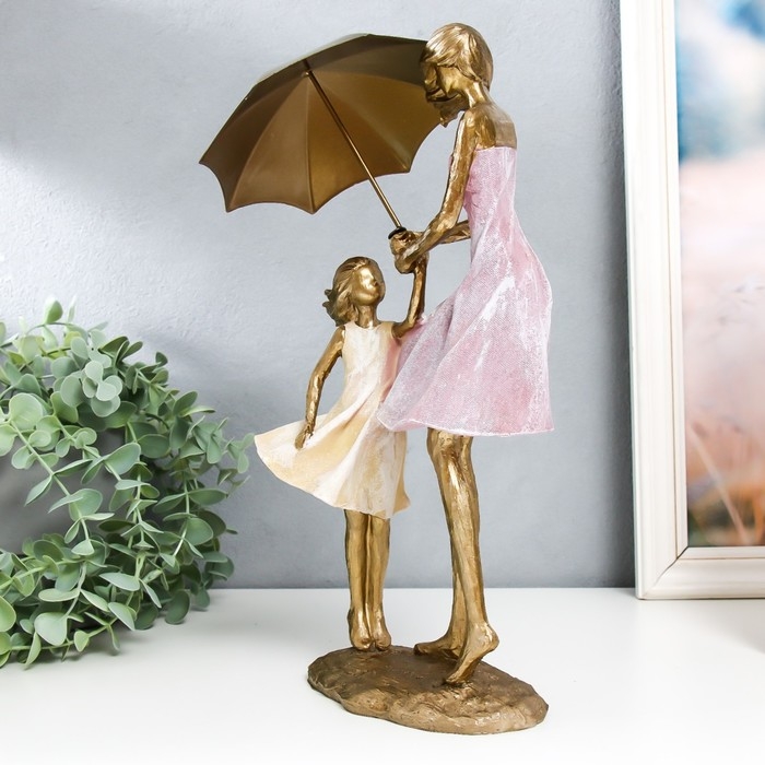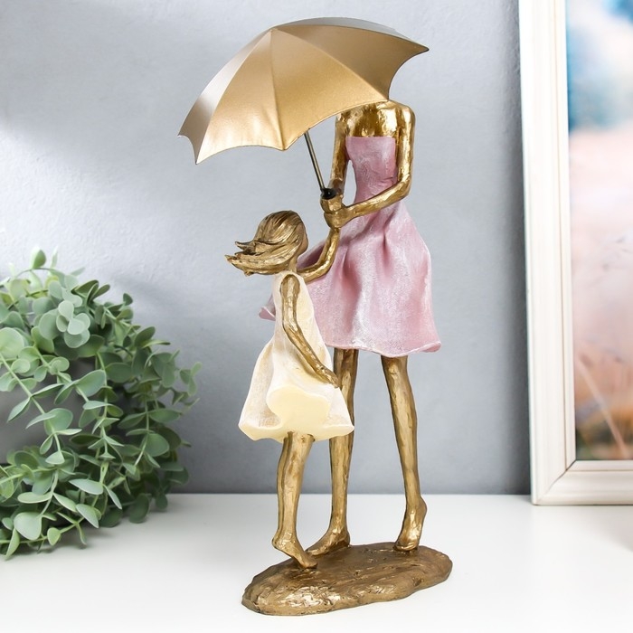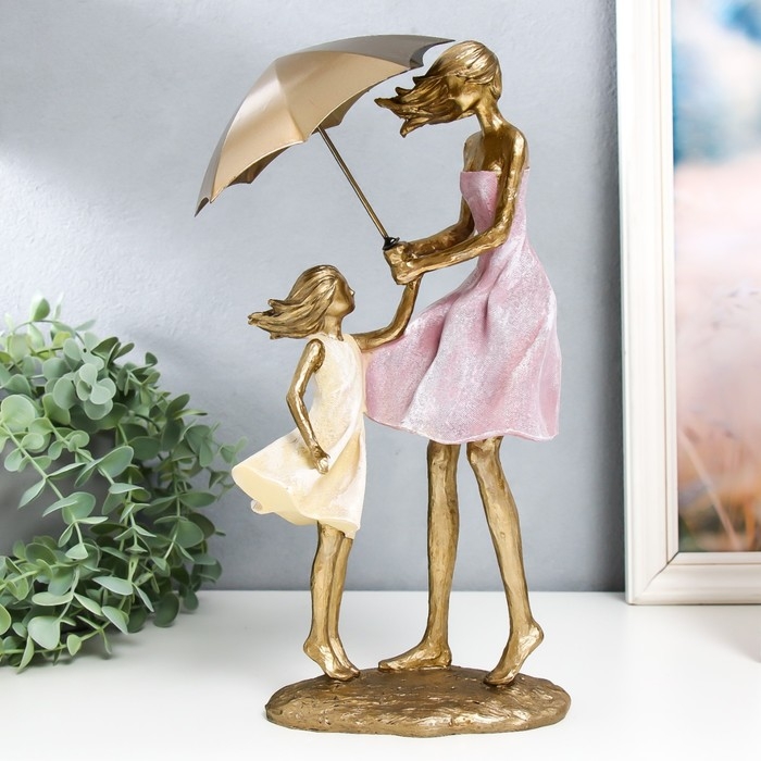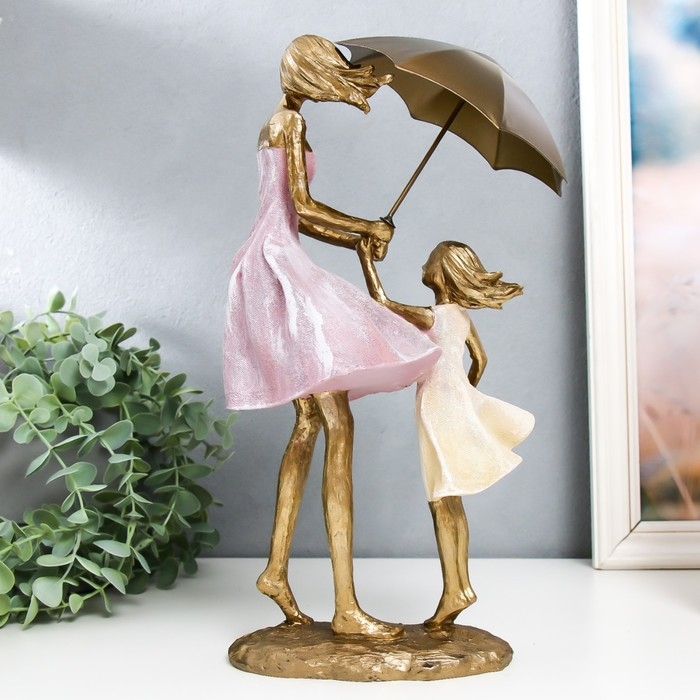 Сувенир полистоун "Мама с дочкой под зонтом на ветру" 12,5х16,5х33 см