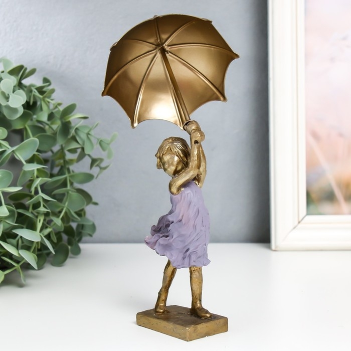 Сувенир полистоун "Девочка с зонтиком на ветру" 4,5х6,5х14 см