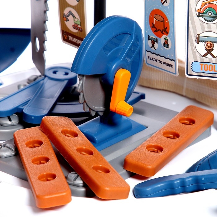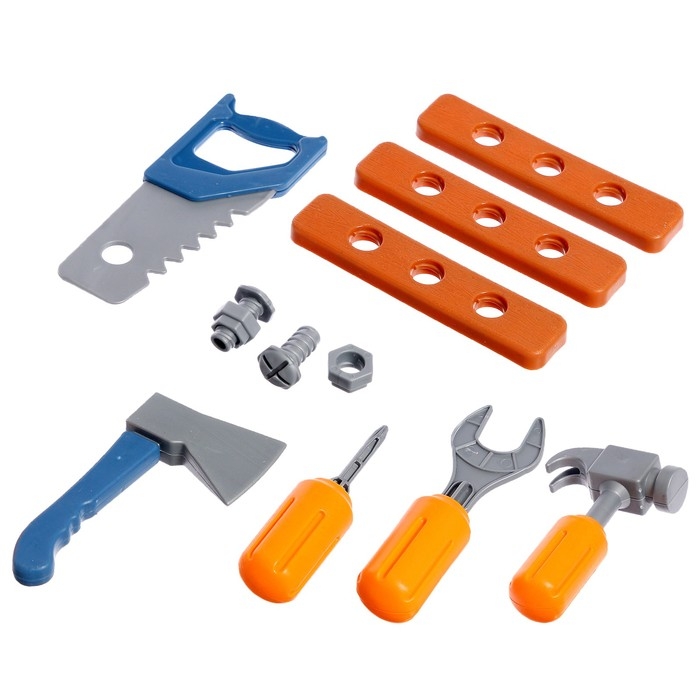 - Расскажите ребёнку о том, как называются инструменты в наборе, покажите, как ими пользоваться. Благодаря набору малыш научится работать с игрушечными инструментами, узнает для чего их использовать.