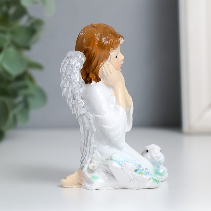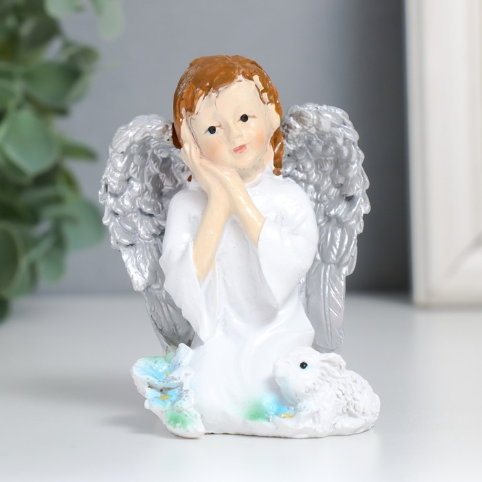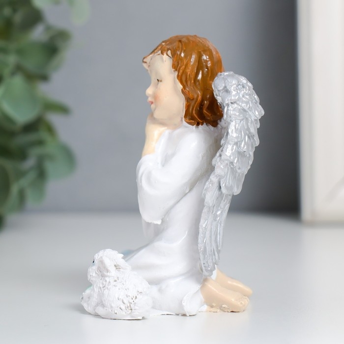 Сувенир полистоун "Девочка ангел с кроликом и цветами" 6х6,5х8,5 см