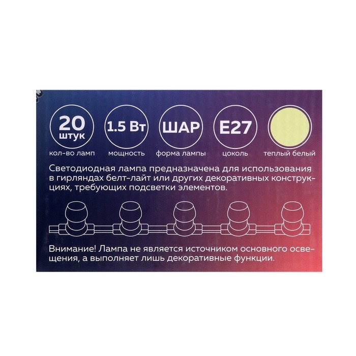Лампа светодиодная Luazon Lighting, G45, Е27, 1.5 Вт, д/белт-лайта, т/белый набор 20шт.