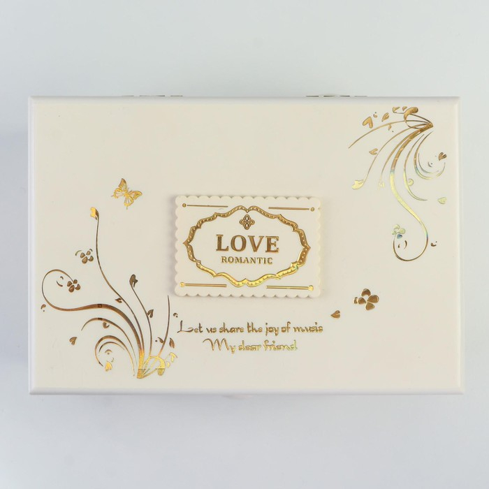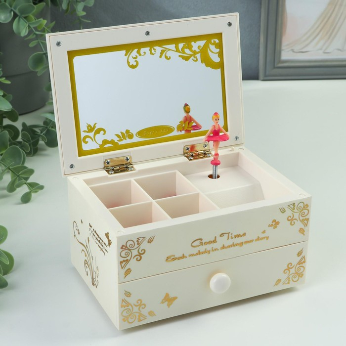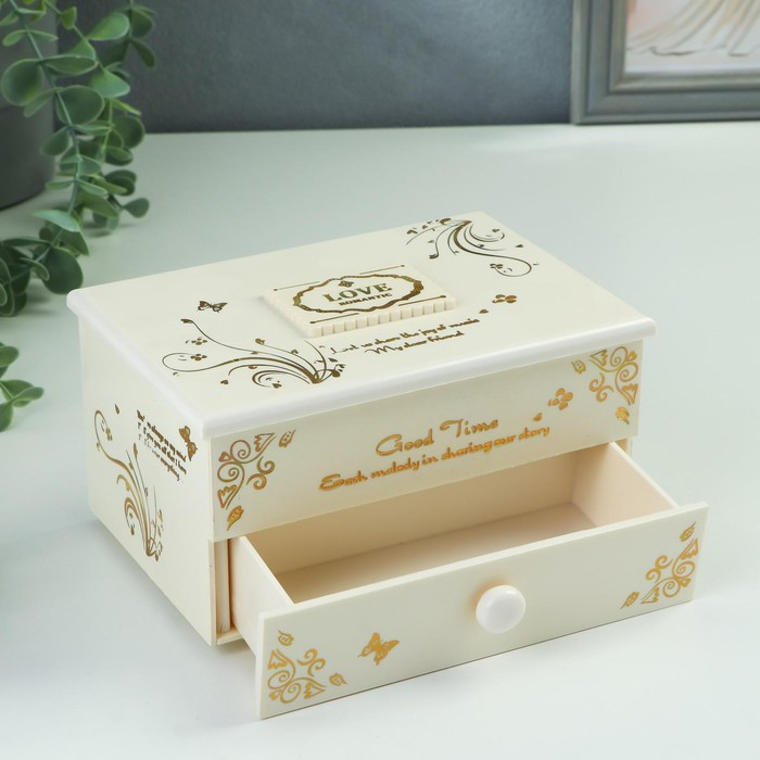 Шкатулка музыкальная механическая "Белый комод с золотым узором" 15,5х10,7х8,5 см