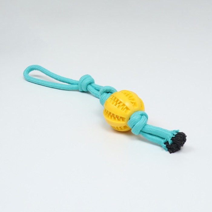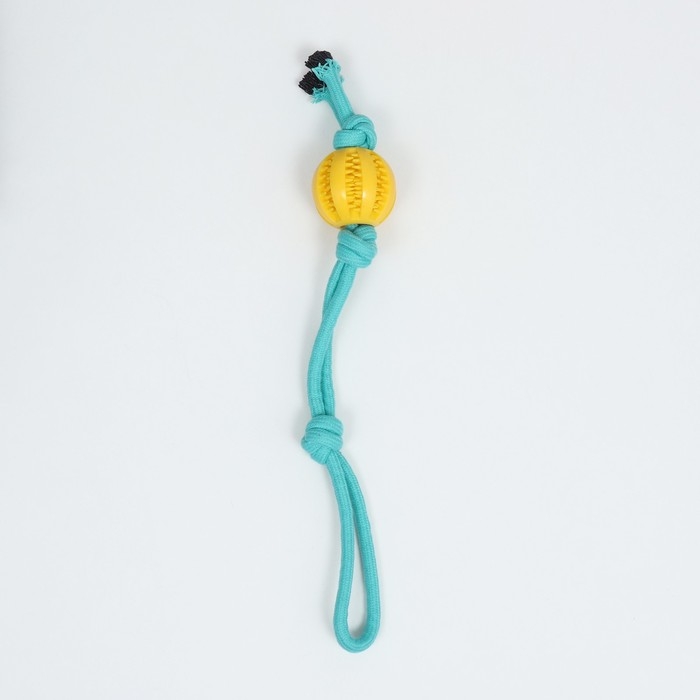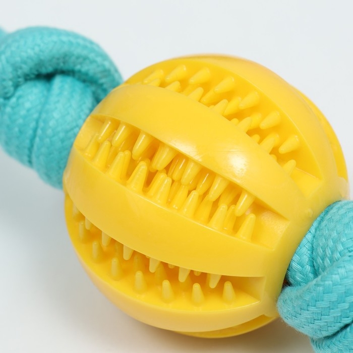 Игрушка канатная плетёная с мячом, до 45 см, до 115 г, голубая/желтая