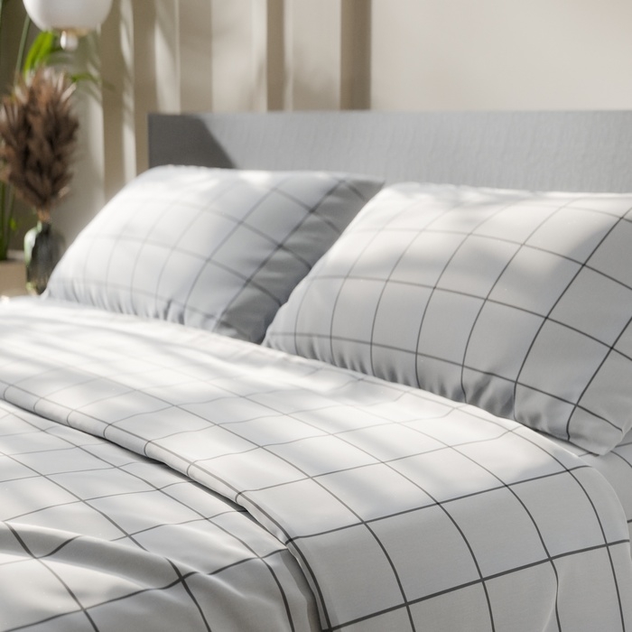 Постельное бельё Этель 2 сп "Клетка" цвет белый 175х215, 200х220, 50х70-2 шт, бязь, 125 г/м2