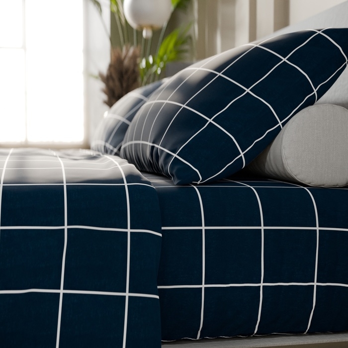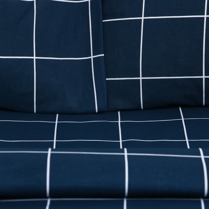 Постельное бельё Этель евро "Клетка" цвет синий 200х215, 220х240, 50х70-2 шт, бязь, 125 г/м2
