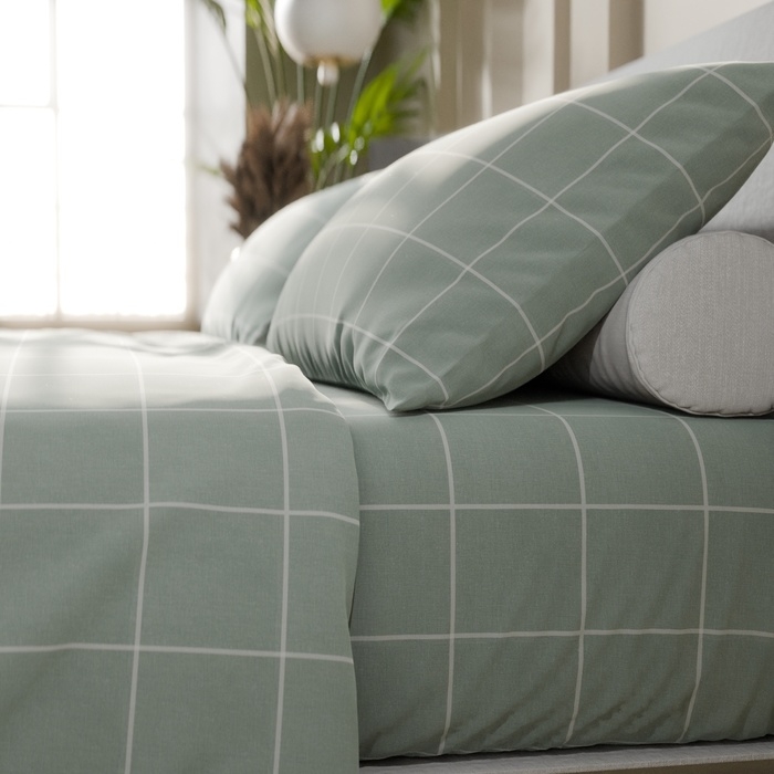 Постельное бельё Этель евро "Клетка" цвет оливковый 200х215, 220х240, 50х70-2 шт, бязь, 125 г/м2