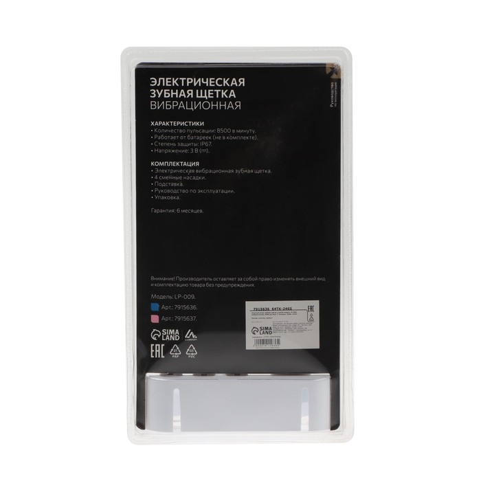 Электрическая зубная щётка Luazon LP-004, вибрационная, от 1хAA (не в компл.), черная