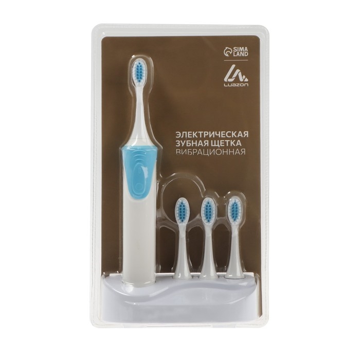 Электрическая зубная щётка Luazon LP-009, вибрационная, 8500 дв/мин, 4 насадки, 2хАА, синяя