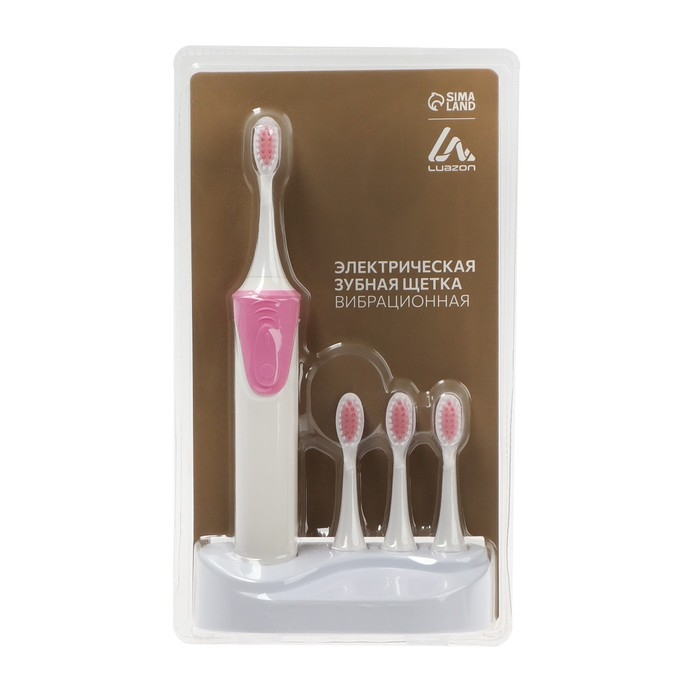 Электрическая зубная щётка Luazon LP-009, вибрационная, 8500 дв/мин, 4 насадки, 2хАА,розовая
