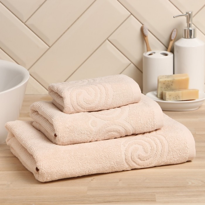 Полотенце махровое Love Life Border, 70х130 см, цвет бежевый, 100% хлопок, 380 гр/м2