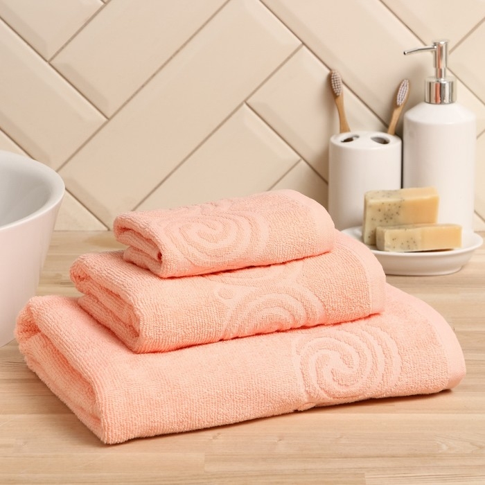 Полотенце махровое Love Life Border, 70х130 см, цвет персиковый, 100% хлопок, 380 гр/м2
