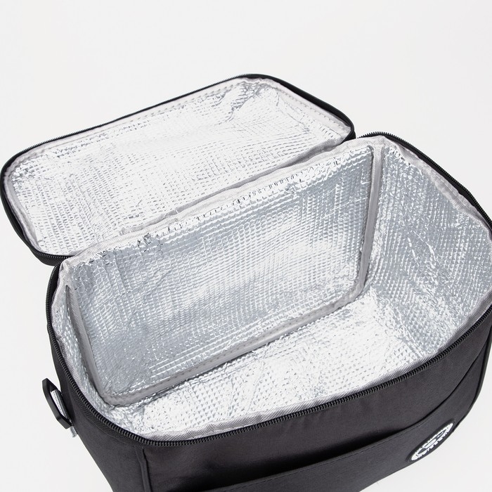 Термосумка на молнии 9 л, длинный ремень, цвет чёрный