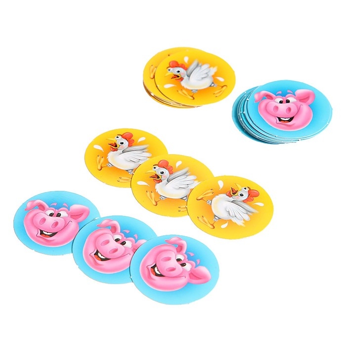- Если оба кубика выпали со свинками, игрок добавляет в свою линию две соответствующие фишки. За каждую свинку игрок получает по одному баллу.