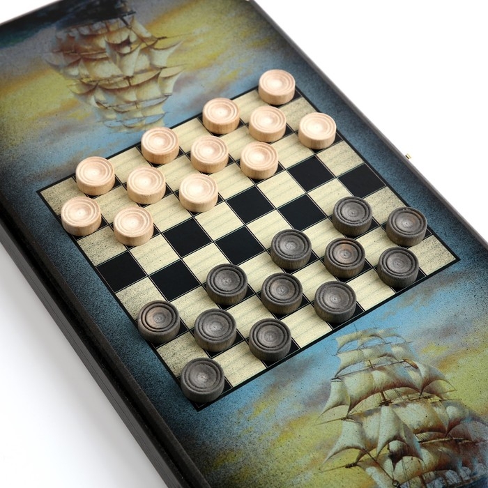 Нарды деревянные большие, настольная игра "Морские", 40 x 40 см, с полем для игры в шашки