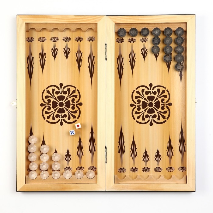 Нарды деревянные большие, настольная игра "Узор", 40 х 40 см, с полем для игры в шашки