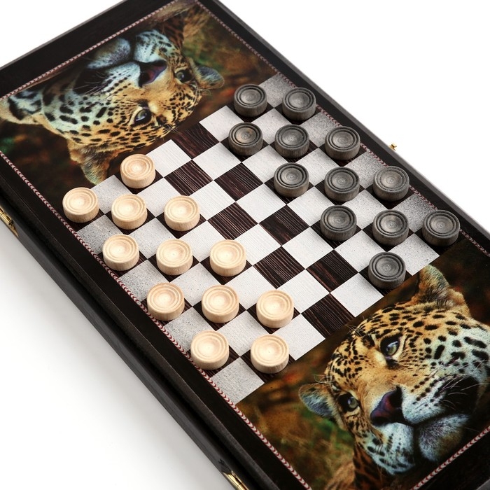 Нарды деревянные большие, настольная игра "Леопард", 40 x 40 см, с полем для игры в шашки