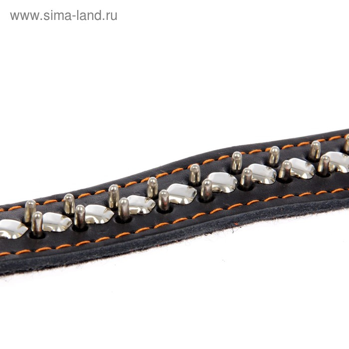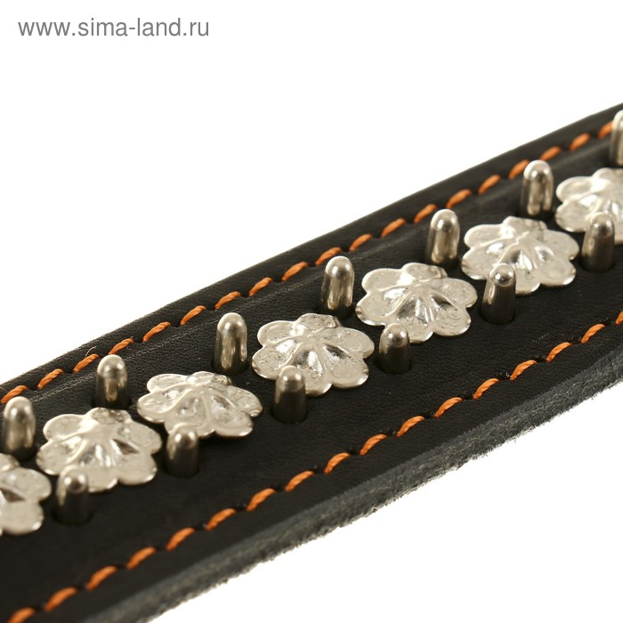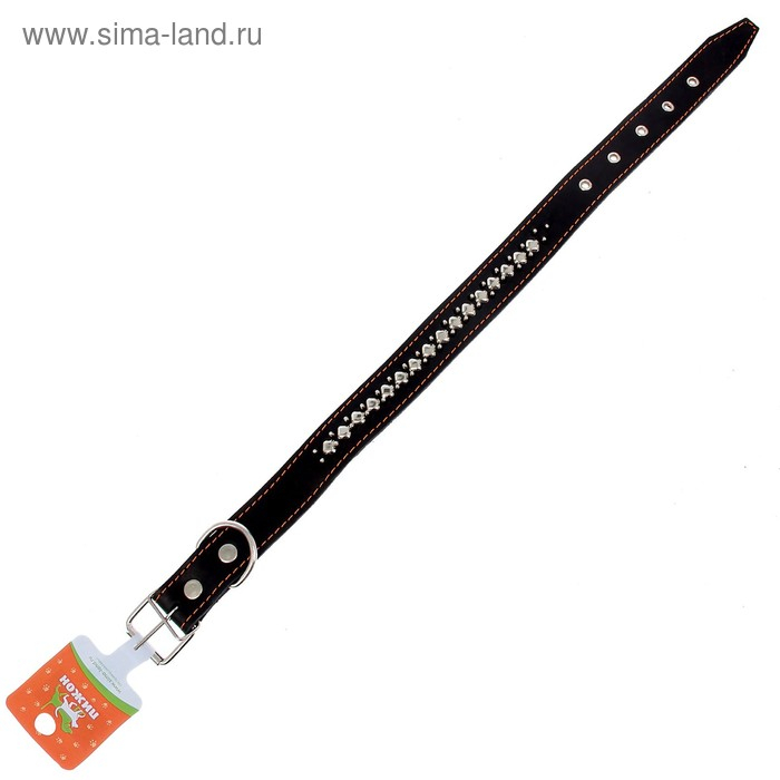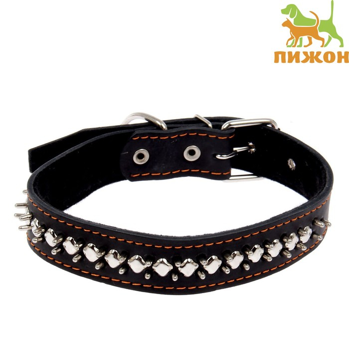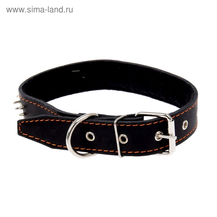 Ошейник кожаный на синтепоне "Ёж", 69 х 3.6 см, ОШ 45-60 см, чёрный
