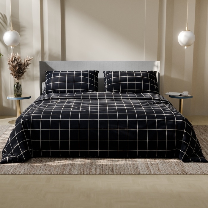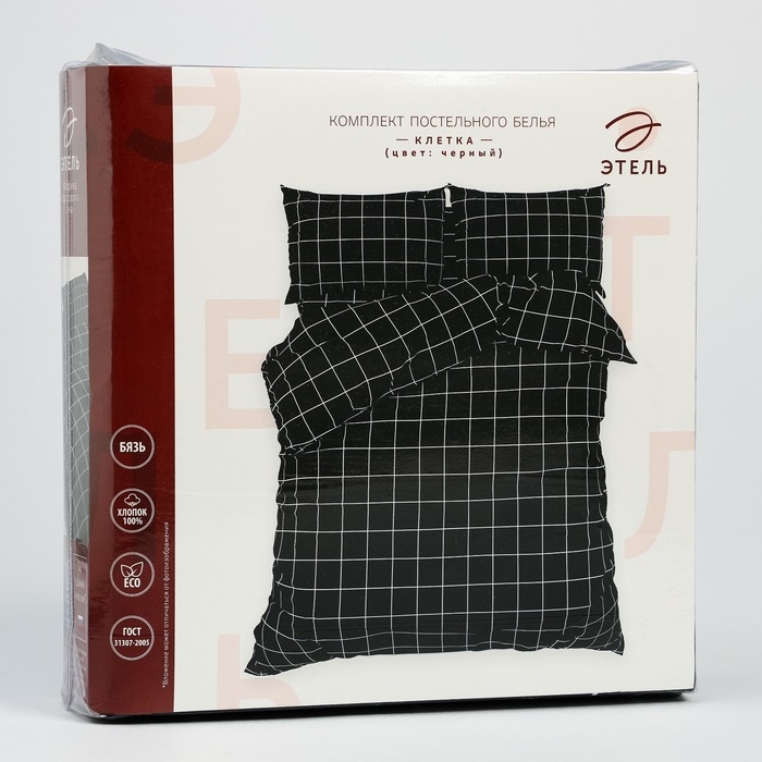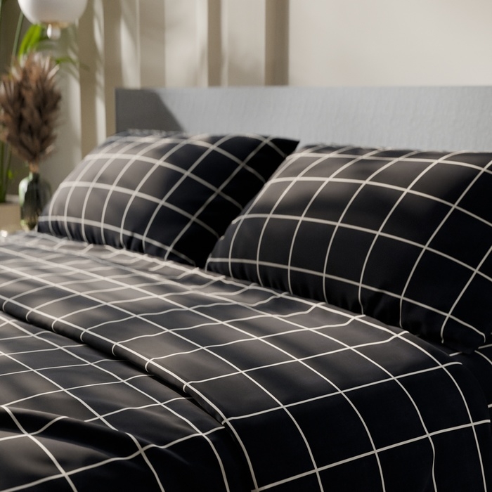 Постельное бельё Этель 2 сп "Клетка" цвет чёрный 175х215, 200х220, 50х70-2 шт, бязь, 125 г/м2