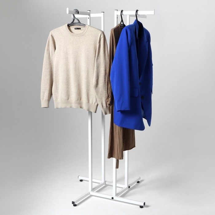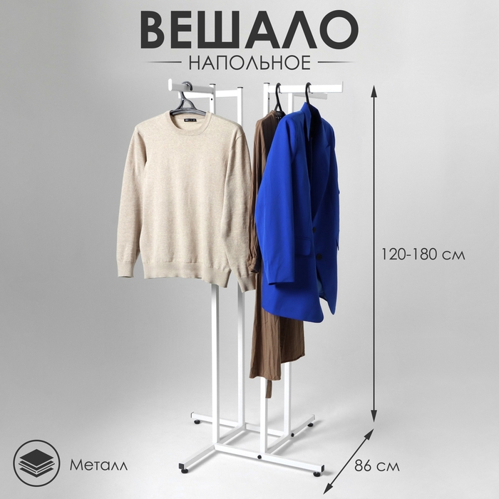 Вешала четырёхстороннее, напольное, регулируемая с четырьмя прямыми кронштейнами 86×86×120-180 см, цвет белый