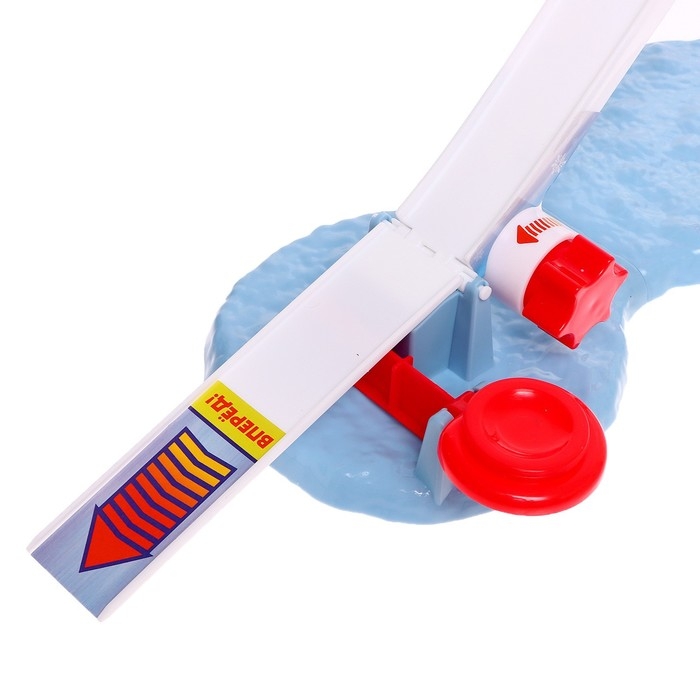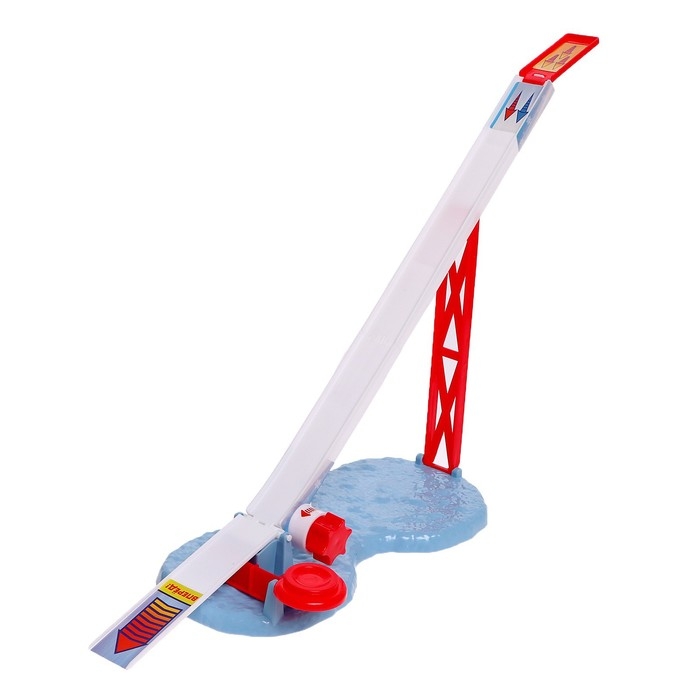 - Приведите спортсмена в движение! Для этого поверните регулирующее колесо в основании трамплина. Платформа на вершине поднимется, и фигурка прыгуна соскользнёт вниз.