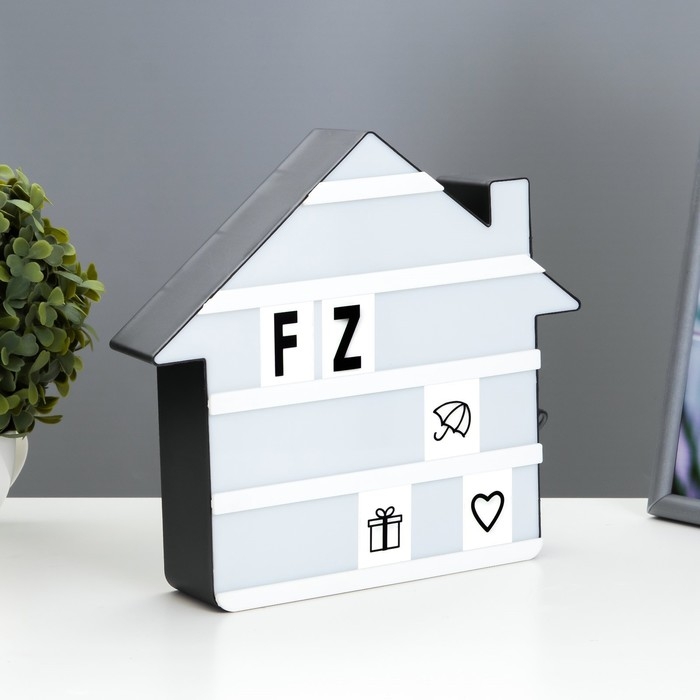 Ночник-алфавит "Домик" LED английский, цифры, от батареек/USB чёрно-белый 22х24,5х5 см RISALUX 9335