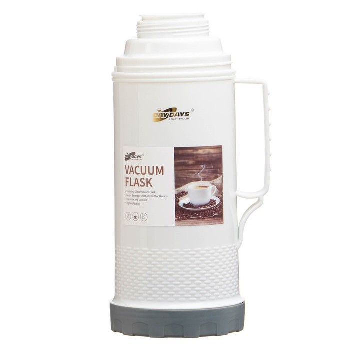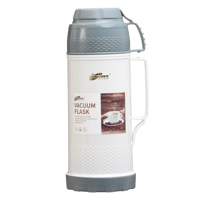 Термос 1 л, со стеклянной колбой, сохраняет тепло 12 ч, с кружкой, серый