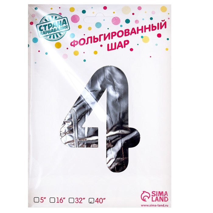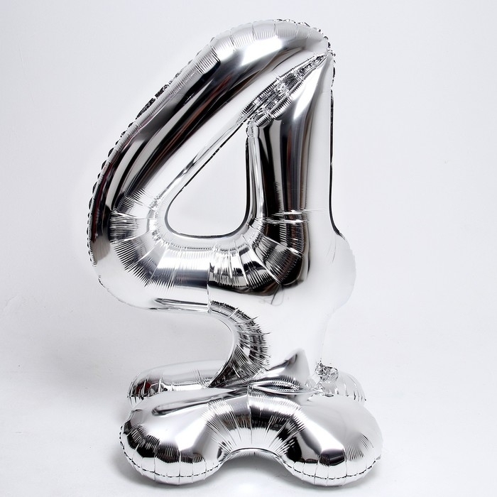 Шар фольгированный 50" «Цифра 4», на подставке, серебро