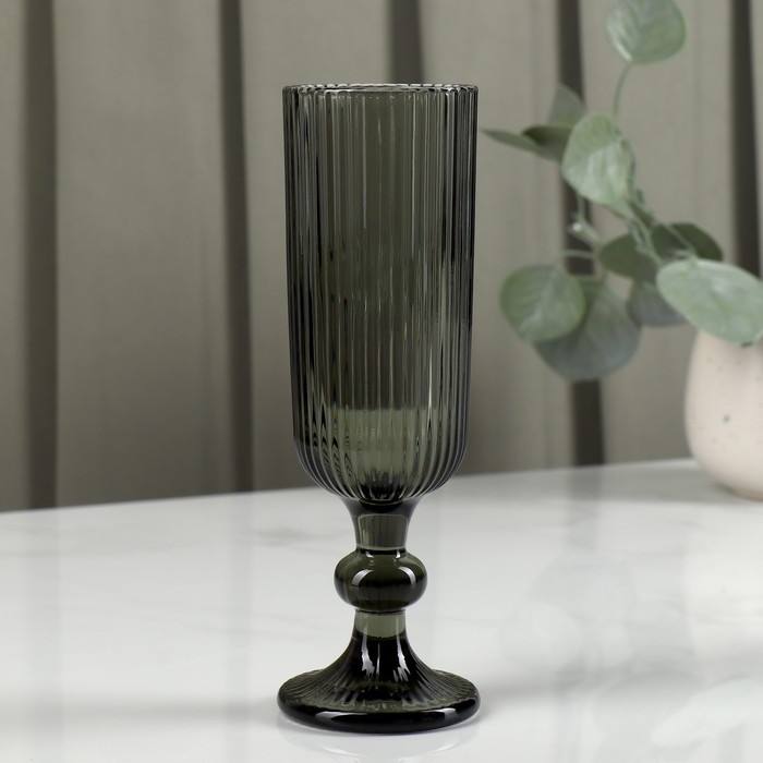 Бокал для шампанского стеклянный Magistro «Грани», 150 мл, 5,5×18,5 см, цвет графит