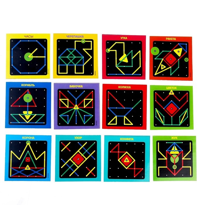 Геоборд со схемами, 12 двусторонних карточек