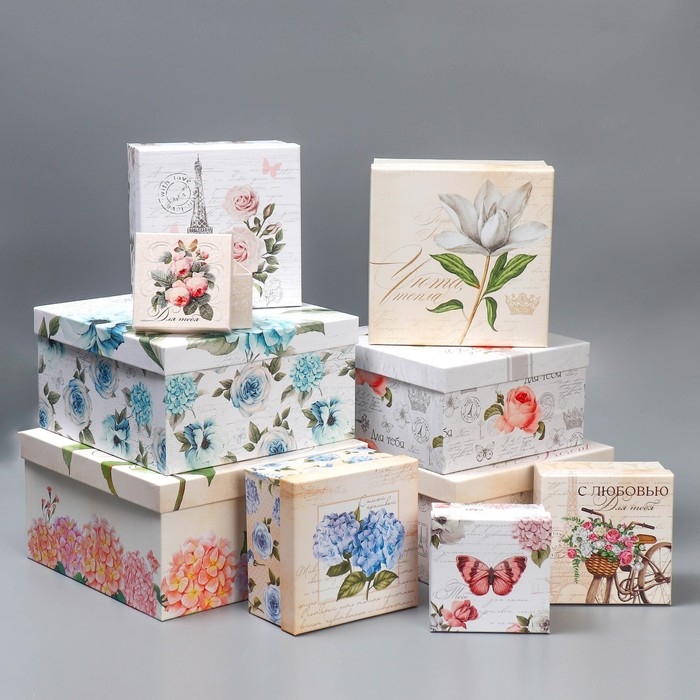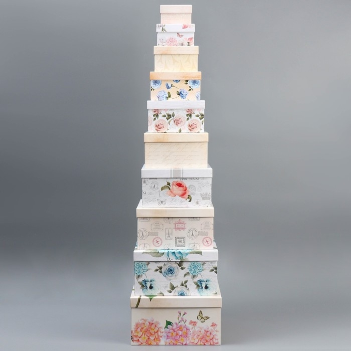 Набор коробок 10 в 1, упаковка подарочная, «Шебби», 10.2 х 10.2 х 6‒28.2 х 28.2 х 15 см