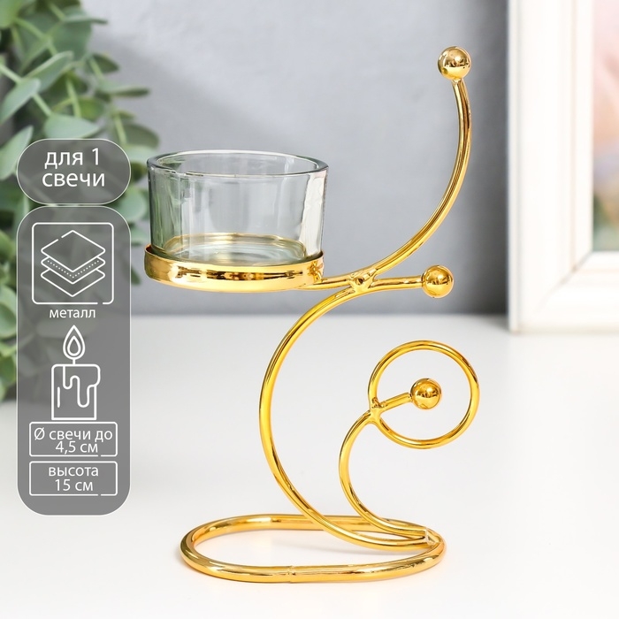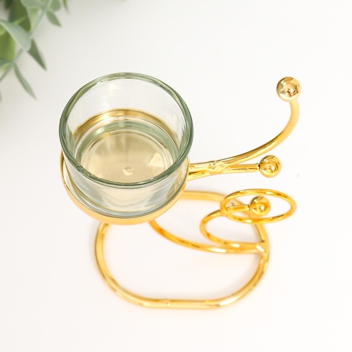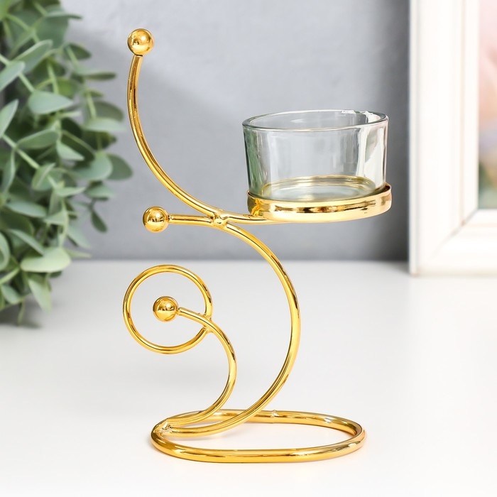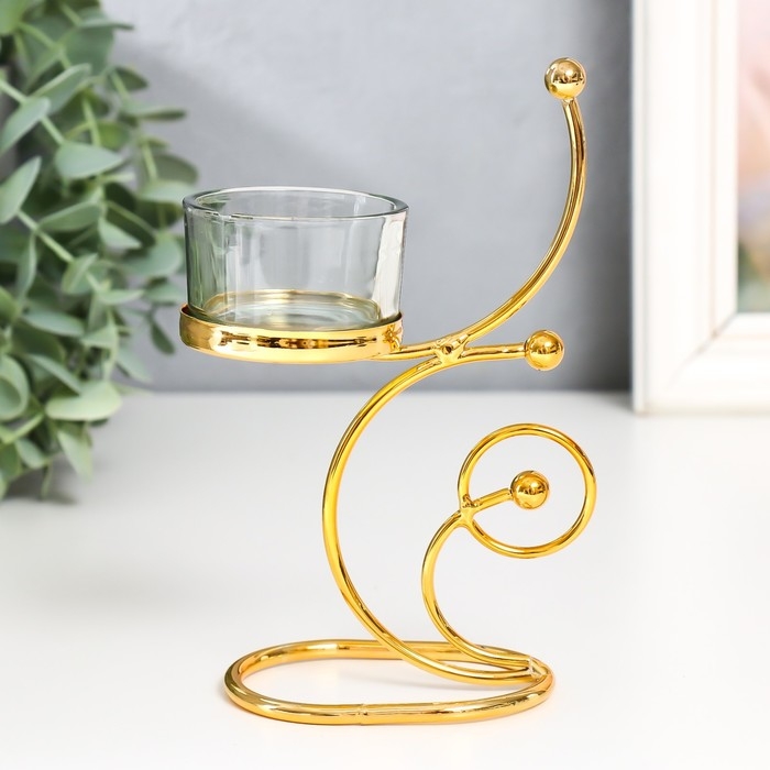 Подсвечник металл, стекло на 1 свечу "Завитки. Шарики" d-4,5 см золото 10х5х15 см