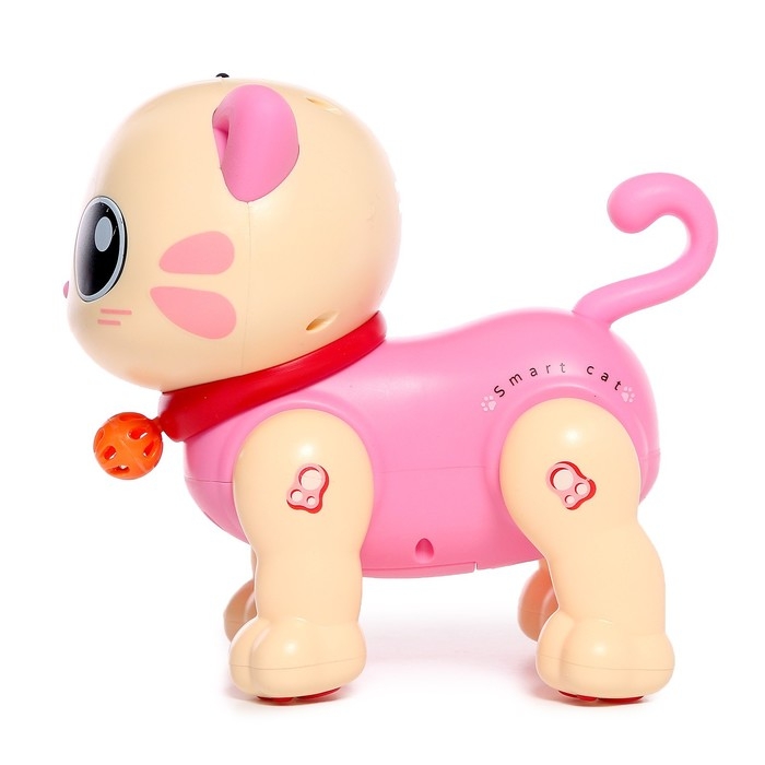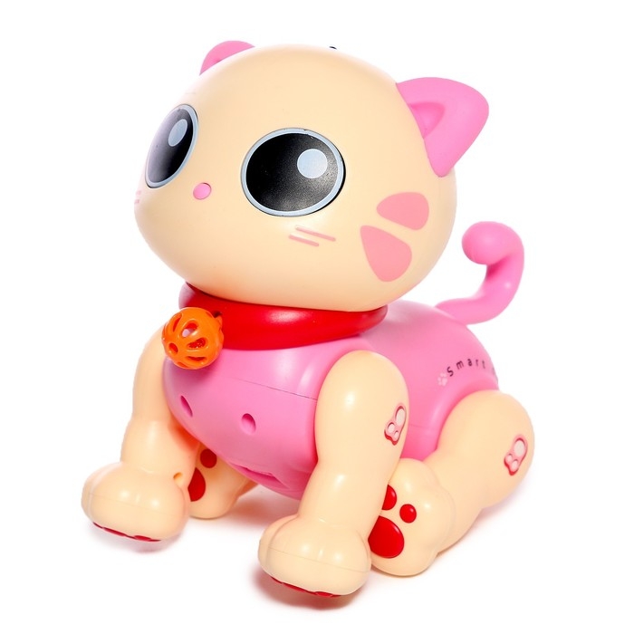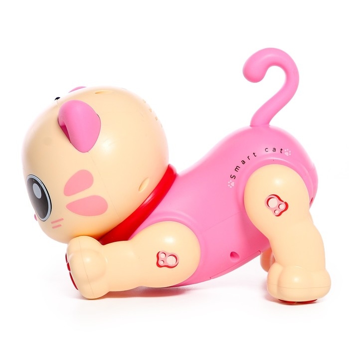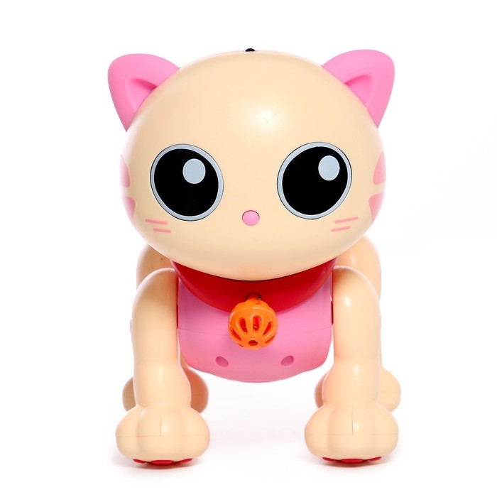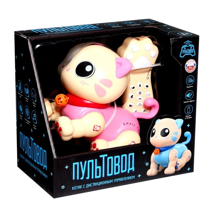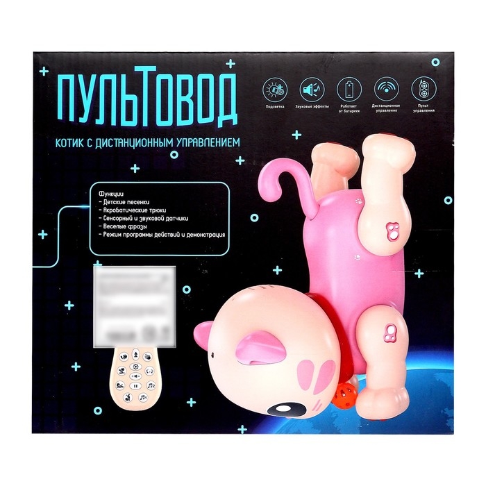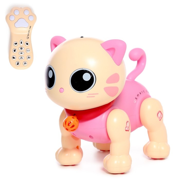 Робот кот «Пультовод» ZHORYA, на пульте управления, интерактивный: сенсорный, звук, свет, на батарейках, на русском языке, розовый