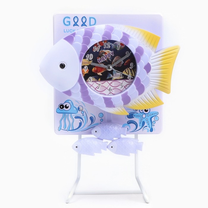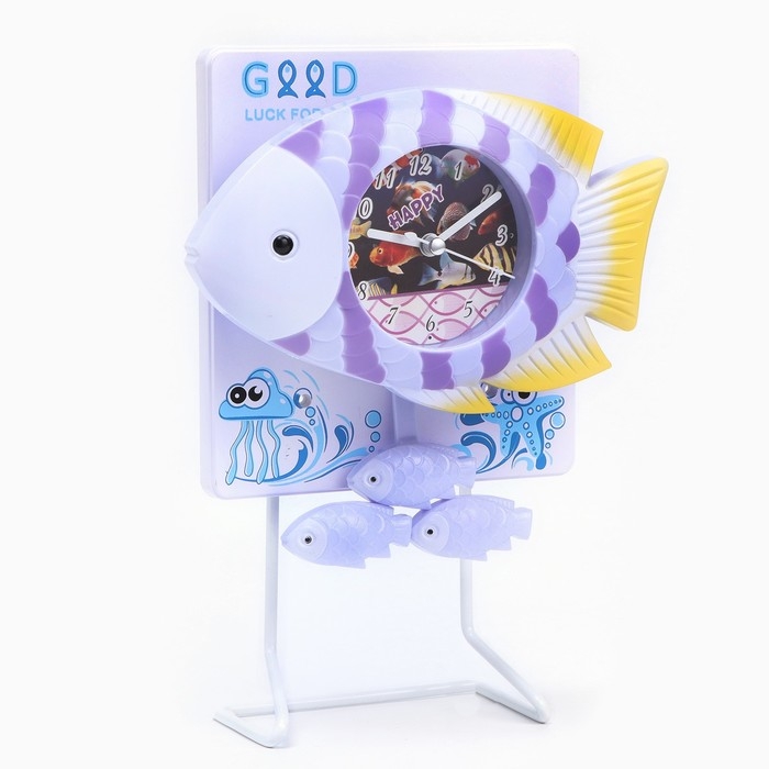 Часы настольные "Рыбки" детские с маятником, настольные, дискретный ход, d-7 см, 18 х 24 см