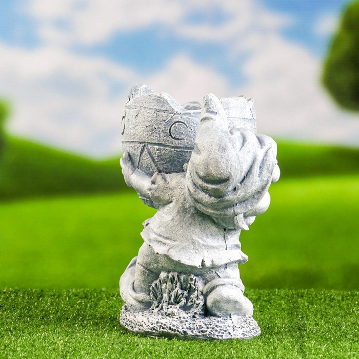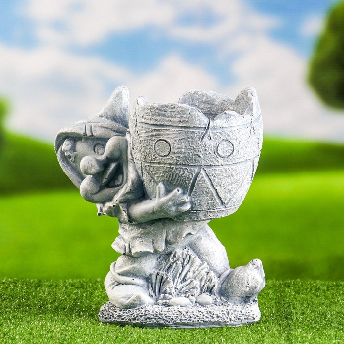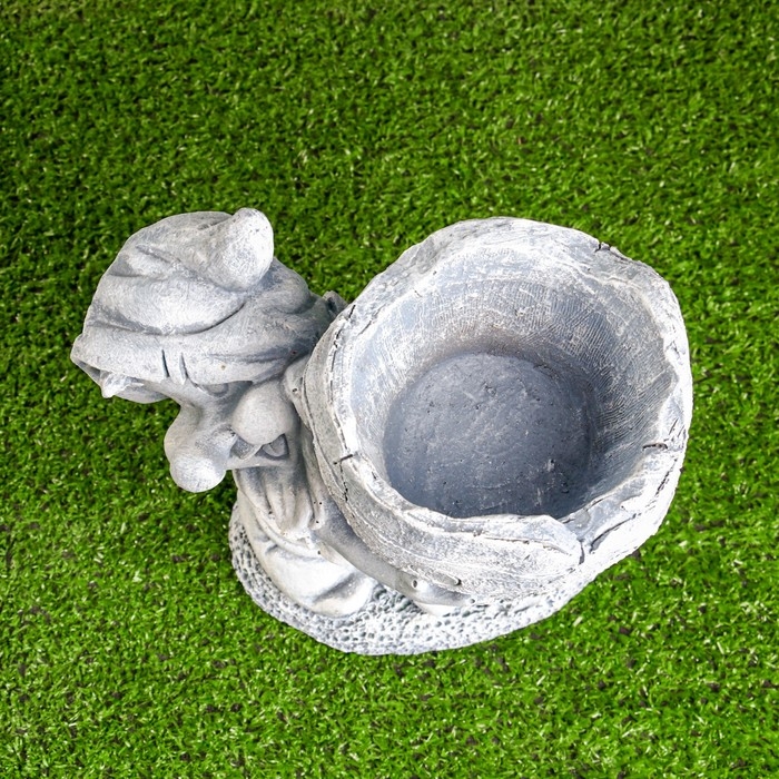Садовая фигура "Гном с кашпо" камень, 25х24см
