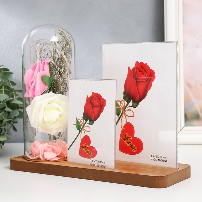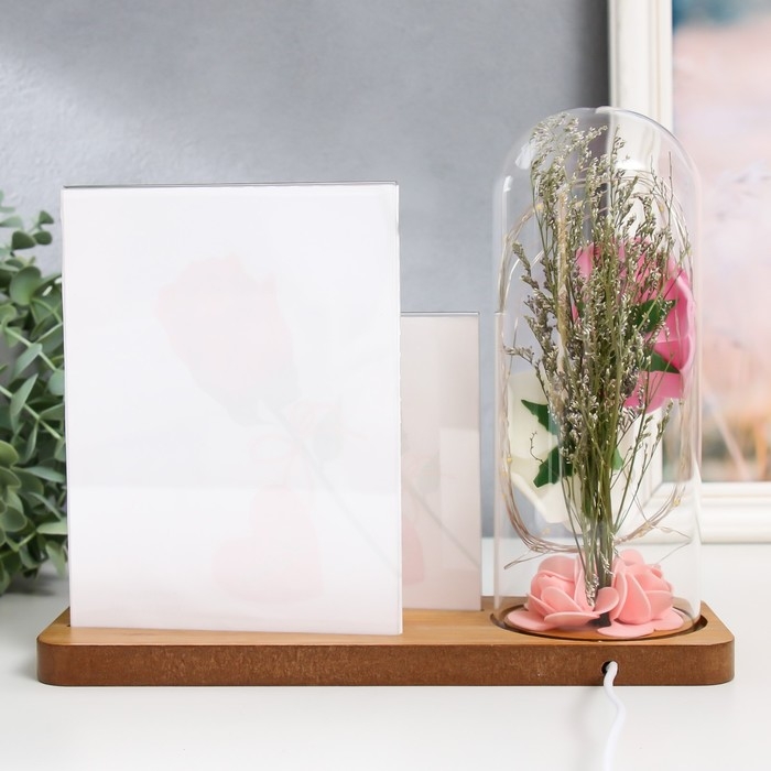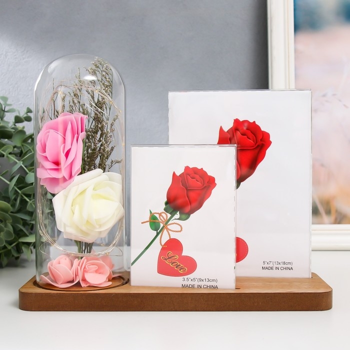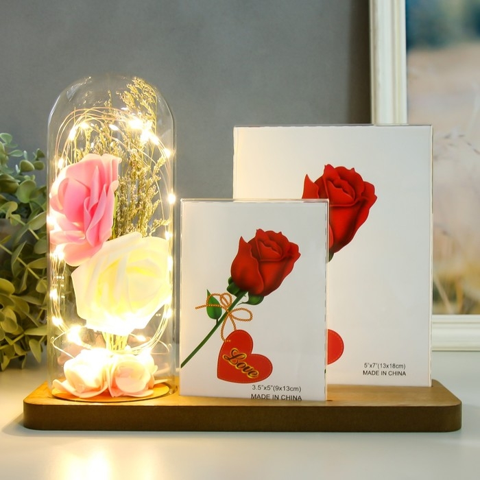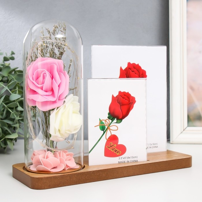 Фоторамка на 2 фото 9х13, 13х18 см с подсветкой "Розы в колбе" USB 9х25х20,5 см