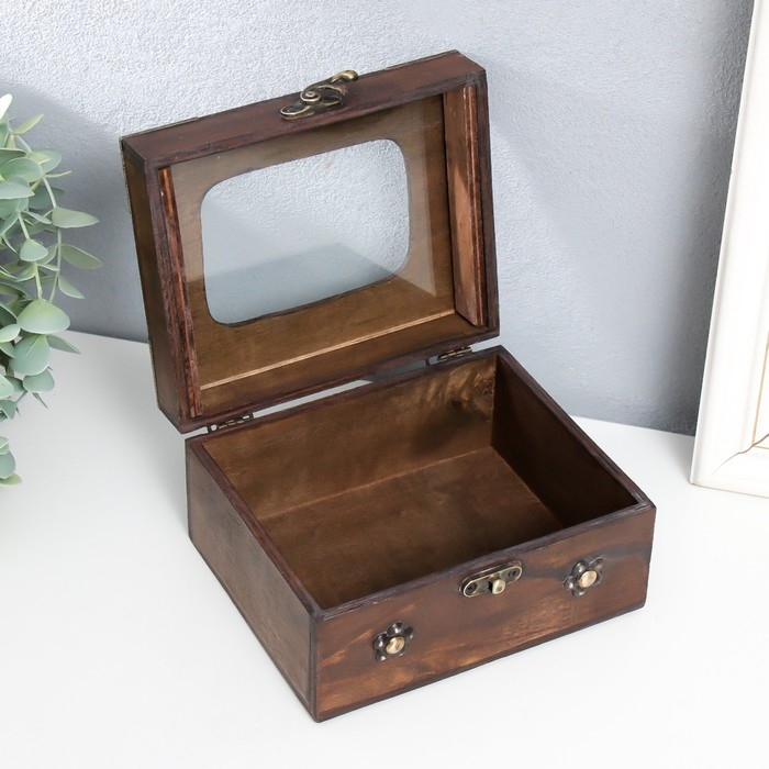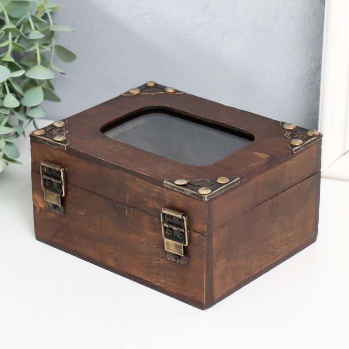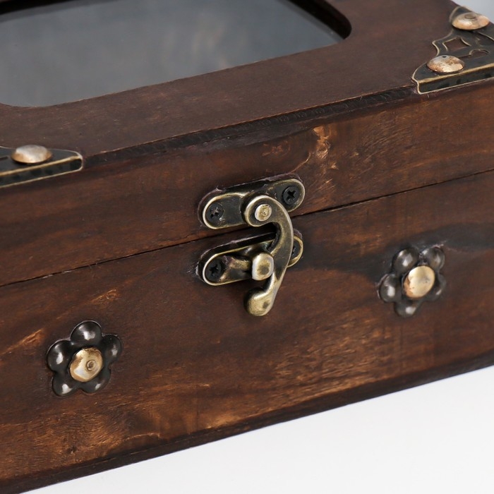 Шкатулка дерево, стекло сундучок "Эдвига" с заклёпками, коричневый 16х13х8,5 см