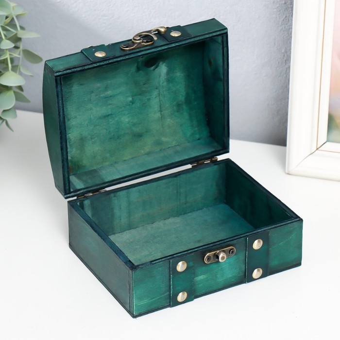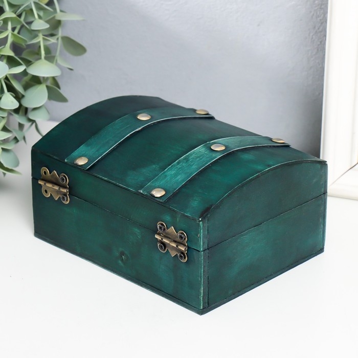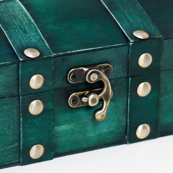 Шкатулка дерево сундучок "Алиенора" с заклёпками, выпуклая, зелёный 15х11,5х7,5 см
