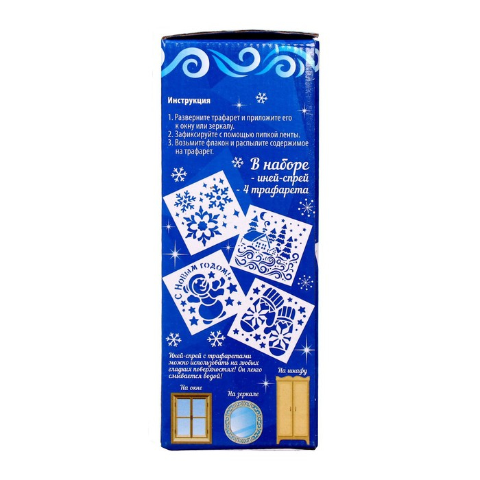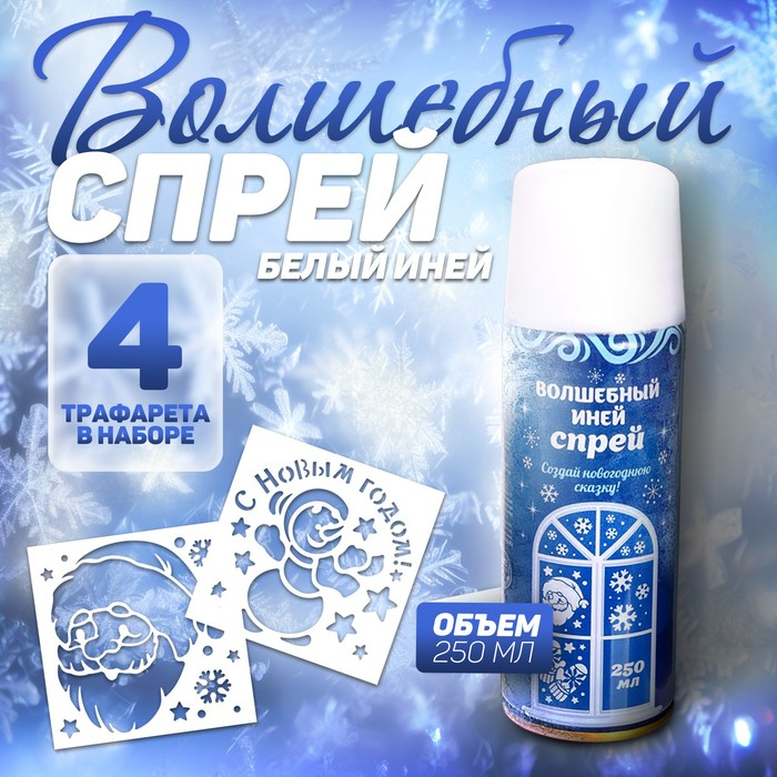 Новогодний спрей - иней «Зимняя сказка», с трафаретами, цвет белый