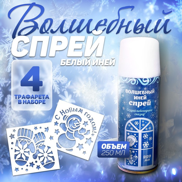 Новогодний спрей - иней «С Новым годом!», с трафаретами, цвет голубой