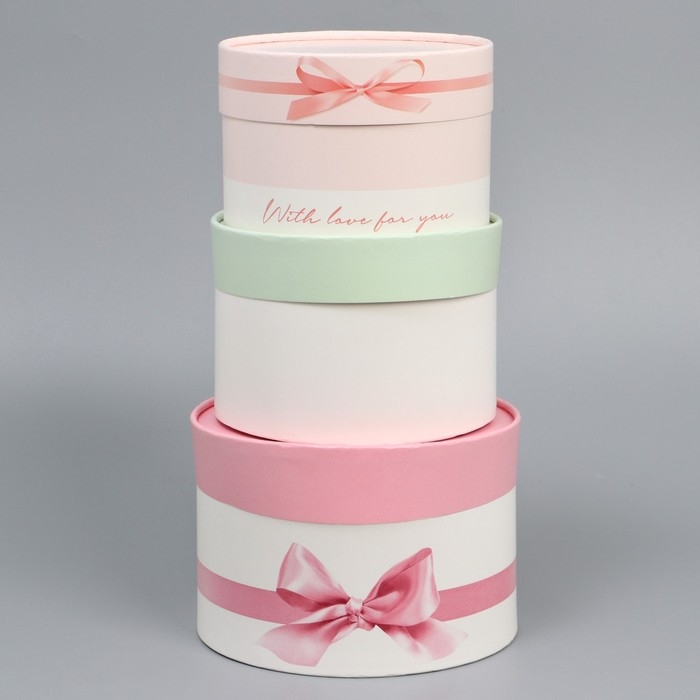 Набор шляпных коробок 3 в 1, упаковка подарочная, «Нежность», 16 х 10, 14 х 9, 13 х 8,5 см