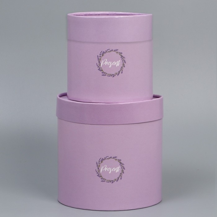 Набор шляпных коробок 2 в 1, упаковка подарочная, «Лаванда», 13 х 13, 16 х 16 см