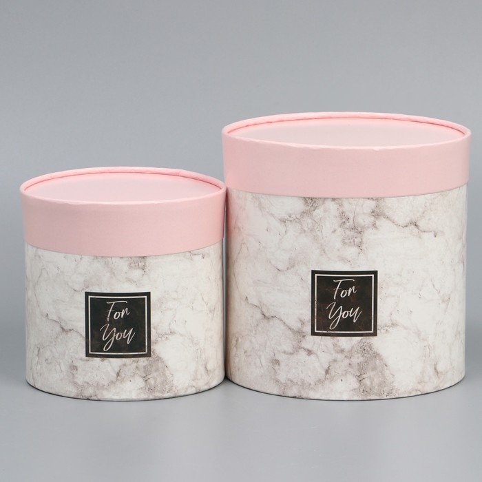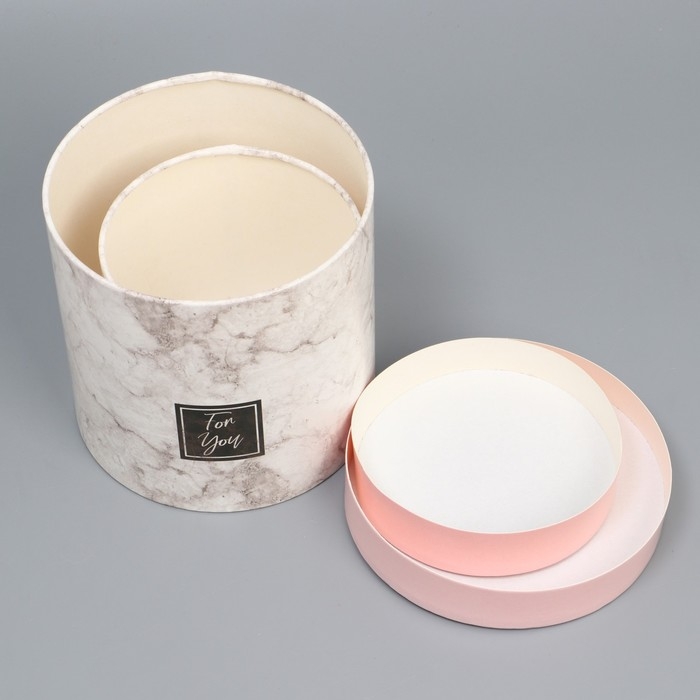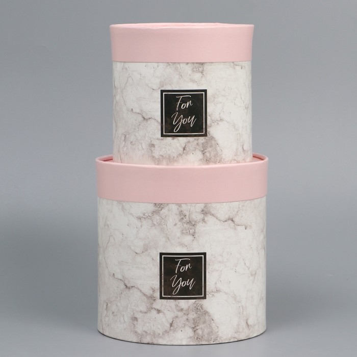 Набор шляпных коробок 2 в 1, упаковка подарочная, «Мрамор», 13 х 13, 16 х 16 см