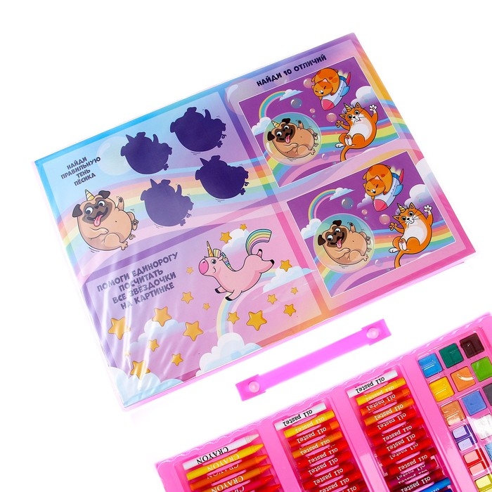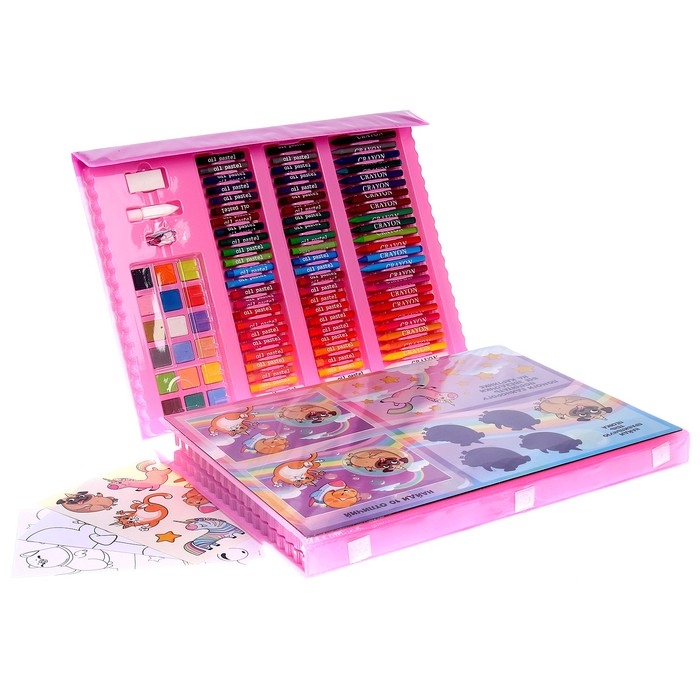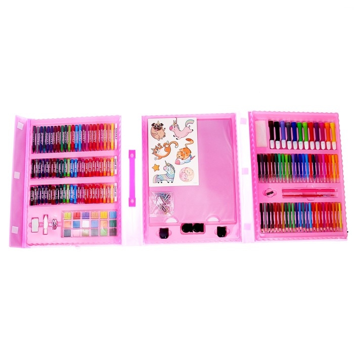 Такой набор станет настоящим подарком для художника. Рисуйте, создавайте шедевры с помощью маркеров, восковых мелков, красок и многого другого!