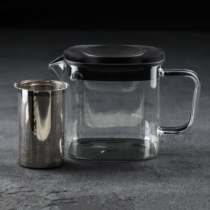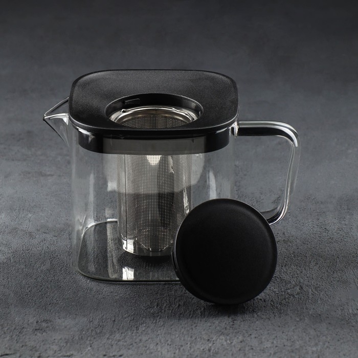 Чайник стеклянный заварочный «Кватро», 600 мл, с металлическим ситом, цвет чёрный