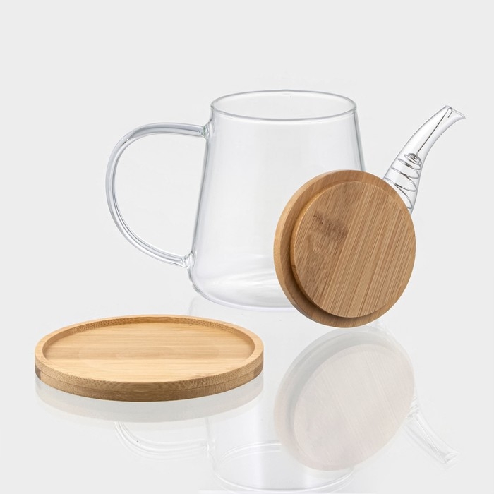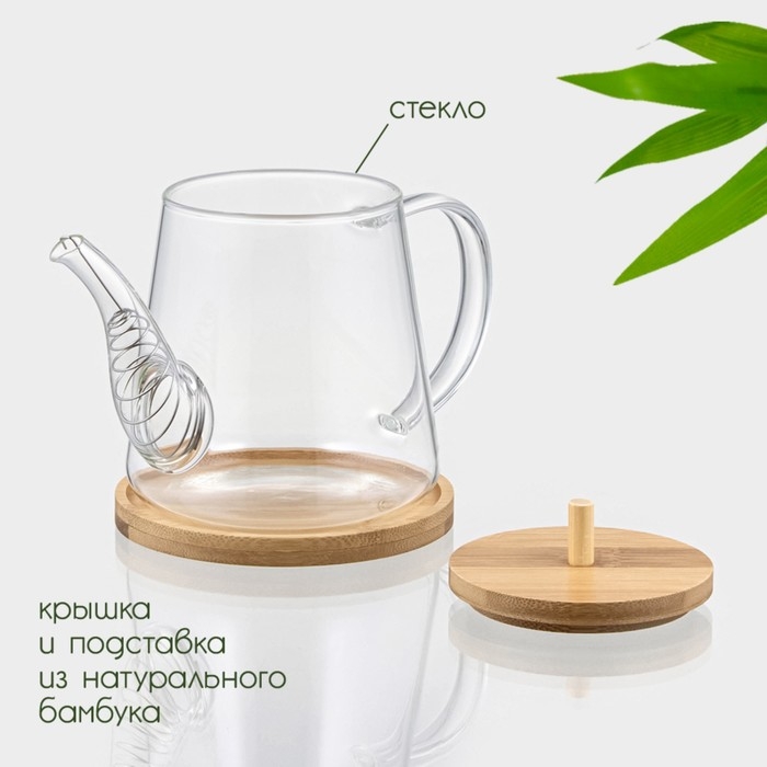 Чайник заварочный стеклянный с бамбуковой крышкой и металлическим фильтром BellaTenero «Эко», 1,2 л