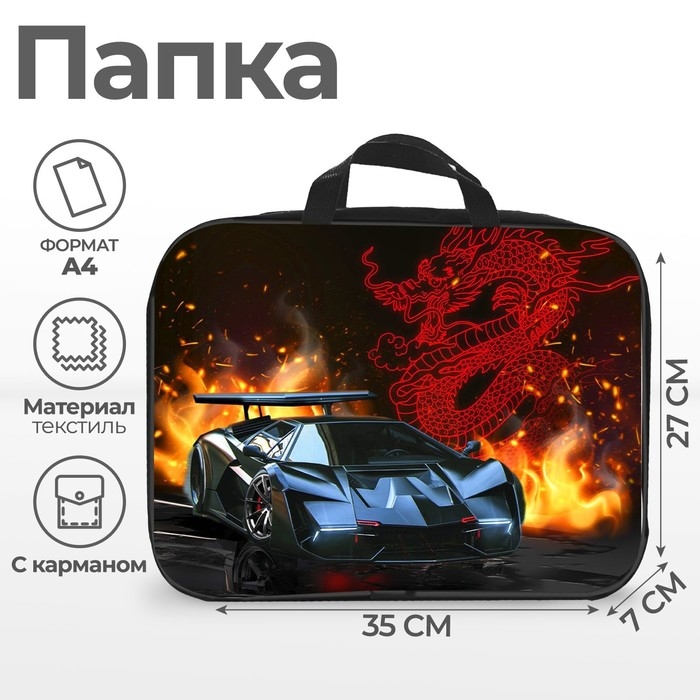 Папка с ручками текстильная А4, 350 х 270 х 70 мм, Calligrata "Тачка корея"